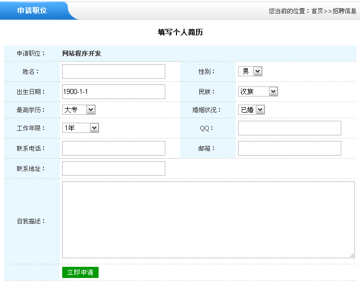 基于XYHCMS的插件,公司企業(yè)官網招聘必備,界面美觀大方,后臺方便管理。申請職位者可在線提交個人簡歷。